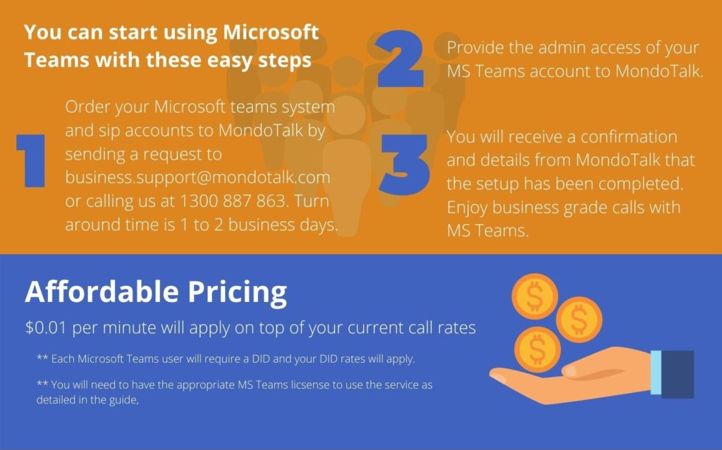 MondoTalk has developed the Microsoft Teams integration with ease of use in mind. Our easy integration process will get you started in no time and our affordable pricing will make sure that you will have the competitive edge in the market.